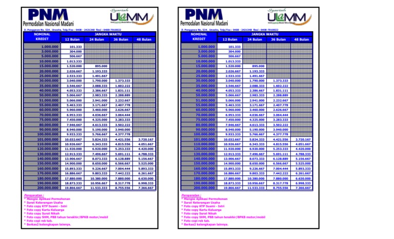 Tabel Angsuran Kredit Serbaguna Mikro Mandiri